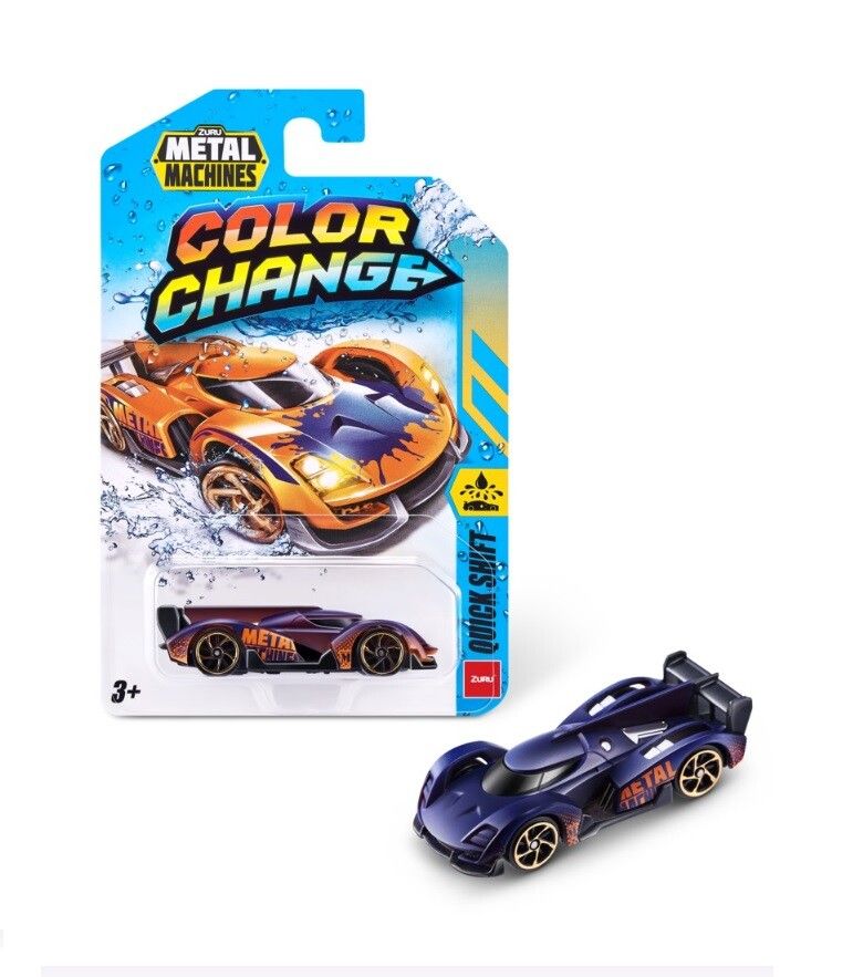 TRANSFORMA EL COLOR DE TUS AUTOS ZURU – METAL MACHINES CON LOS VEHICULOS COLOR CHANGE. !SUMERGIR EN AGUA TIBIA PARA CAMBIAR EL COLOR EL AGUA FRIA LO VUELVE A CAMBIAR! EDAD RECOMENDADA +3 ANOS MATERIAL METAL Y PLASTICO – ESCALA 1:64