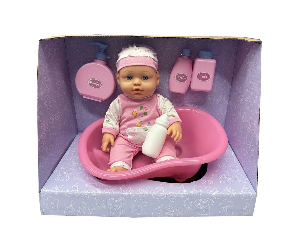 BEBOTE TINY IDEAL PARA REGALAR MEDIDA CAJA 36 X 26 X 12 CM MEDIDA BEBE: 31CM INCLUYE: 1 BEBOTE CON CUERPO DE GOMA FIRME BANERA TALCO CREMA SHAMPOO (POTES VACIOS). EL MODELO DEL LA ROPITA VARIA CONSULTANOS!