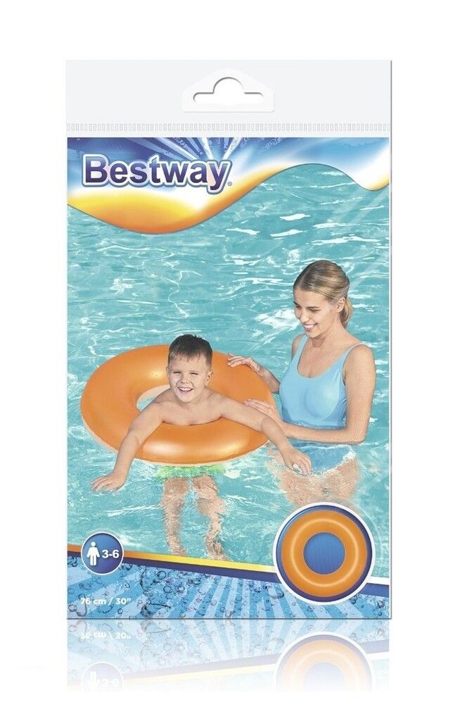 SALVAVIDA INFLABLE NEON MEDIANO BESTWAY 76 CM VALVULA DE SEGURIDAD VINILO RESISTENTE PROBADO COLORES BRILLANTES ACABADO NEON ESCARCHADO CONTENIDO: UN FLOTADOR