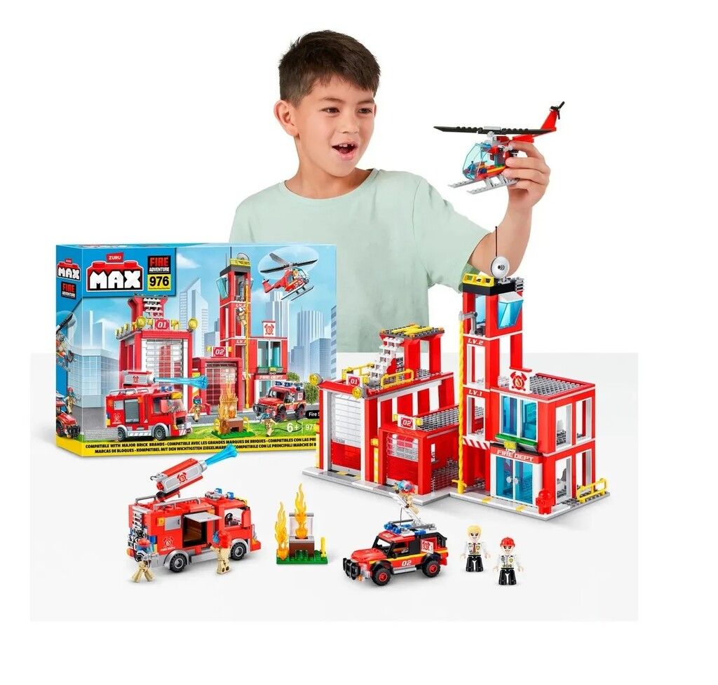 CON EL MAX CITY BOX PLAYSET FIRE STATION DE 976 PIEZAS LA CIUDAD ESTA EN TUS MANOS. ¡CONSTRUI JUGA Y SALVA EL DIA UNA Y OTRA VEZ!