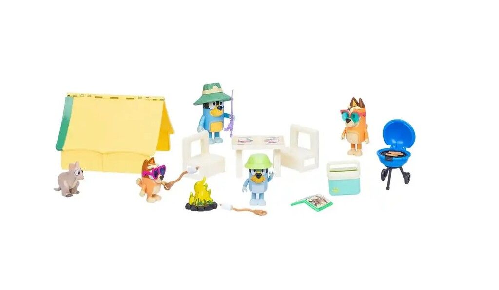 BLUEY PLAYSET DE CAMPAMENTO CON LA FAMILIA MUNECOS FIGURAS – ESTE PLAYSET RECREA UN EMOCIONANTE VIAJE EN FAMILIA – INCLUYE A: BLUEY CHILLI BINGO BANDIT Y POTOROO – VIENE COMPLETO CON UNA CARPA ACCESORIOS DE CAMPAMENTO Y FIGURAS DE BLUEY Y SU FAMILIA – LOS PEQUENOS PODRAN IMAGINAR MIL HISTORIAS AL AIRE LIBRE DISFRUTANDO DE CADA DETALLE QUE INCLUYE DESDE SILLAS Y FOGATA HASTA EQUIPO DE CAMPAMENTO – EDAD RECOMENDADA +3 ANOS – ORIGINAL MOOSE