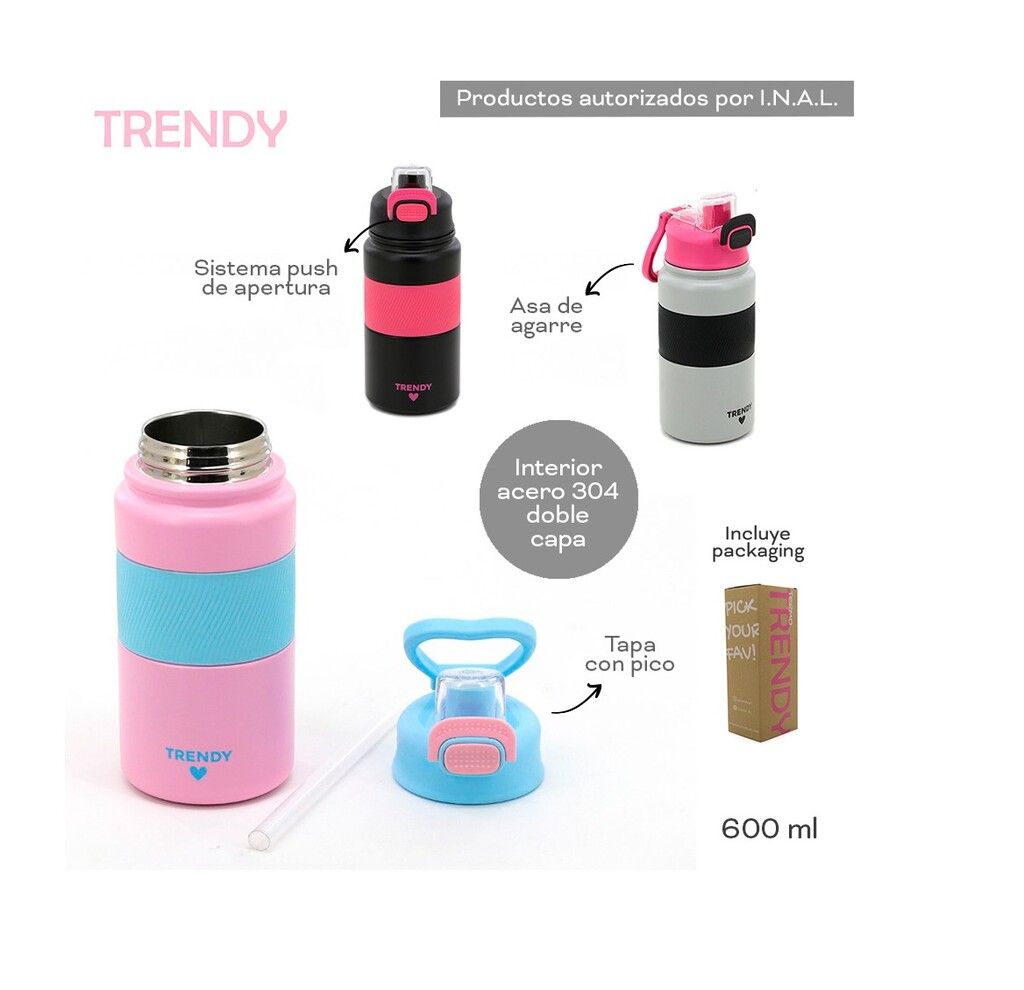 BOTELLA TERMICA TRENDY 600 ML TAPA CON PICO COD 18441 ROSA