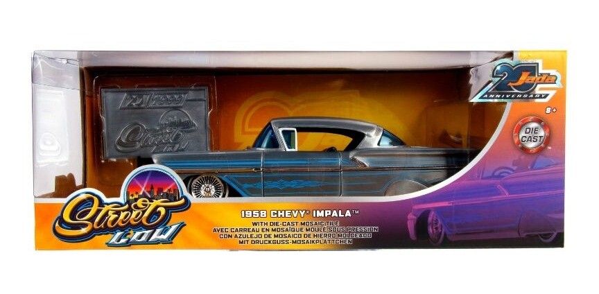 CHEVY IMPALA 1958 STREET LOW CON AZULEJO DE MOSAICO DE HIERRO MOLDEADO MARCA JADA 20 ANIVERSARIO. MATERIAL- DIE CAST. MEDIDAS- 21.5CM DE LARGO- 9CM DE ANCHO Y 6.3CM DE ALTO.