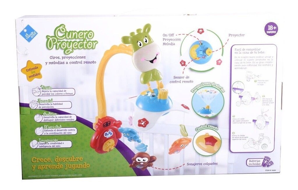 CUNERO CON LUCES Y SONIDOS ESTIMULA A LOS NINOS MEDIANTE SUS DULCES MELODIAS. INCLUYE PILAS.