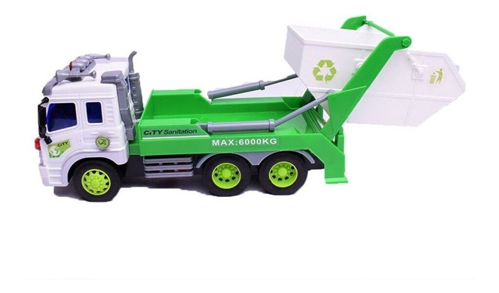 INCREIBLE CAMION DE BASURA CON LUCES Y SONIDOS!! DIVERTITE RECORRIENDO TODA LA CIUDAD RECOLECTANDO LOS RESIDUOS RECICLABLES! CONTENEDOR CON APERTURA Y VOLQUETE DESPLAZABLE!! QUE ESPERAS PARA SALIR A LIMPIAR TU CIUDAD?! LAS MEDIDAS DEL CAMION ES DE 20CM DE LARGO POR 10 DE ALTO APROXIMADAMENTE!