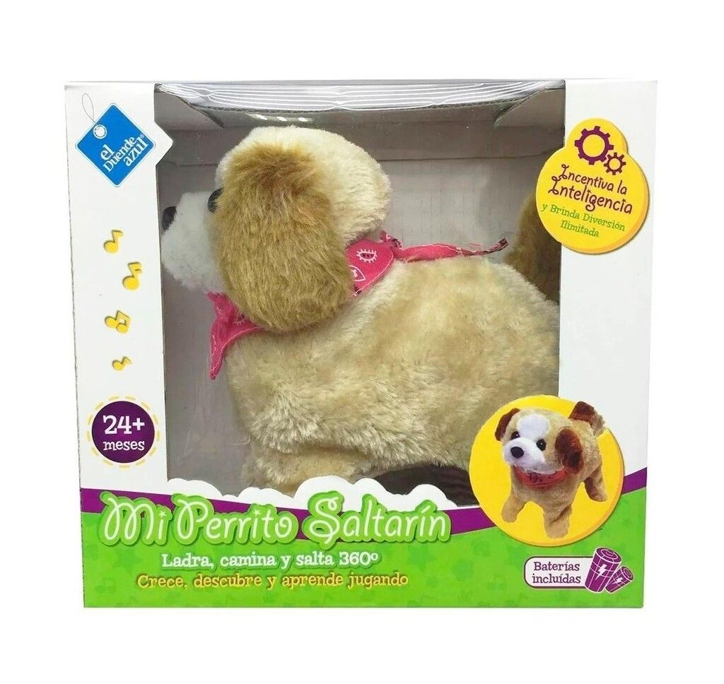 DESCRIPCION- CRECE- DESCUBRE Y APRENDE JUGANDO. MI PRIMER PERRITO SALTARIN CAMINA LADRA Y MUEVE LA COLA- SE SIENTA- CAMINA- TOMA IMPULSO Y SALTA 360º. DESARROLLA LA HABILIDAD Y CAPACIDAD DE PERCEPCION- ESTIMULA EL DESARROLLO MOTRIZ Y LA COORDINACION- LA CAPACIDAD DE DISTINGUIR DIFERENTES SONIDOS. INSPIRA LA CREATIVIDAD Y LA INTELIGENCIA DEL NINO.