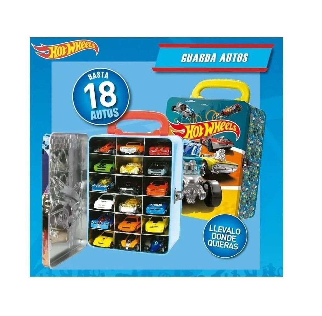 CAR CASE METALICO HOT WHEELS GUARDA 18 AUTITOS INTEK ? MEDIDAS- 18-5CM X 14CM X 9CM ? NO INCLUYE AUTOS