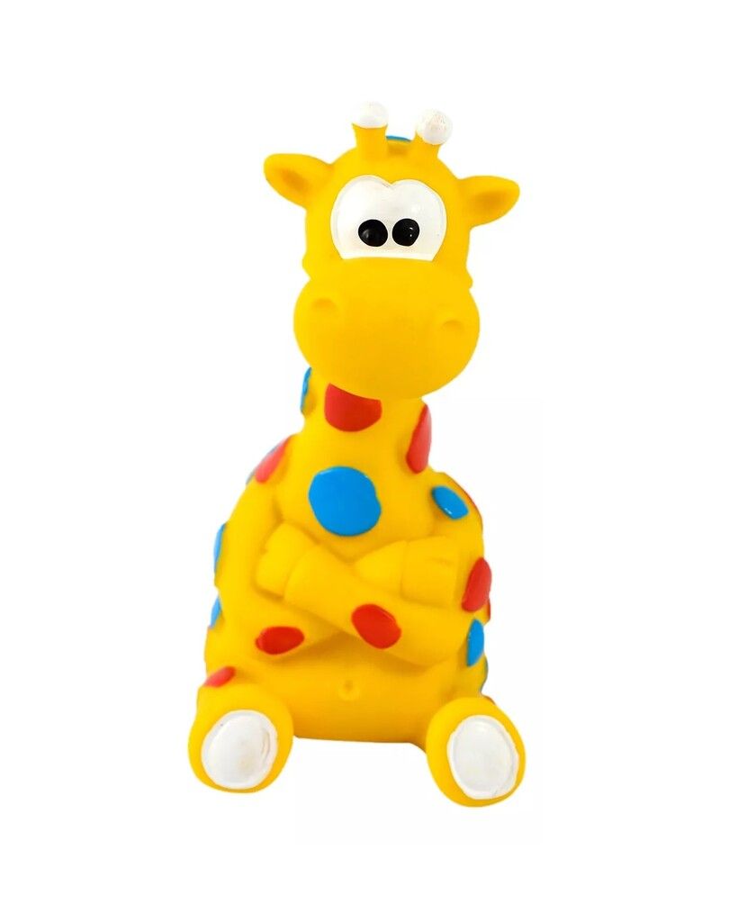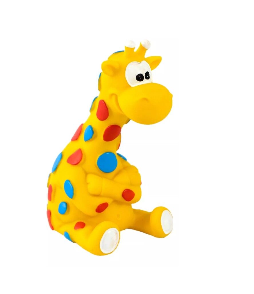 JIRAFA: ANIMALITO BLANDO. FABRICADO EN PVC TIPO GOMA DE EXCELENTE CALIDAD. CON CHIFLE. MEDIDAS: ALTURA: 135 CM. ANCHO: 6 CM. LARGO: 8 CM.