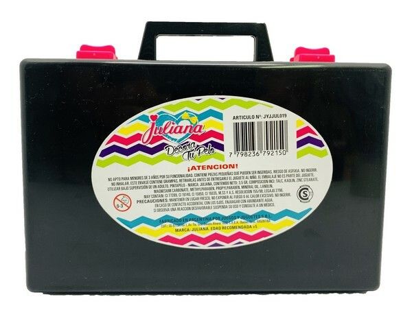 VALIJA GRANDE JULIANA DECORA TU PELO GRANDE ORIGINAL TV – MANUAL CON IDEAS PARA DECORAR TU PELO. – INCLUYE- . BRILLO EN GEL . PINTA PELO . VINCHA . CINTAS DE COLORES . HEBILLAS . GOMITAS DE PELO . CEPILLO . CLIPS . MECHAS DE COLORES . Y MUCHO MAS – SALE FACILMENTE CON AGUA.