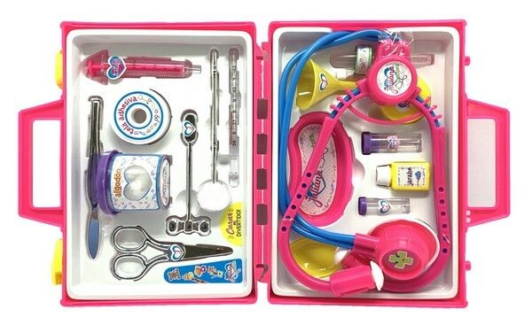 VALIJA JULIANA DOCTORA CHICA LA VALIJITA CONTIENE- ESTETOCOPIO TIJERA TERMOMETRO VENDAS JERINGA VASITO PARA LAS MEDIDAS FRASQUITO DE JARABE PARA LA TOS Y MUCHAS OTRA COSAS MAS!!! LA VALIJA MIDE 20X14X7CM