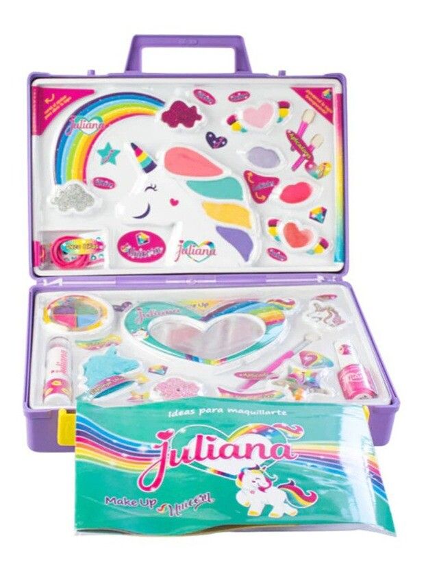PARA QUE JUEGUES A LOOKEARTE COMO MAS TE GUSTE. LA VALIJA GRANDE DE MAKE UP UNICORN- INCLUYE PALETA UNICORNIO CON SOMBRAS CREMOSAS DE COLORES- MAQUILLAJE CON GLITTER- LABIAL- ESMALTE- STICKERS PARA DECORAR TUS UNAS- HEBILLAS- PULSERA- ESPONJA- APLICADORES- Y DEMAS ACCESORIOS.