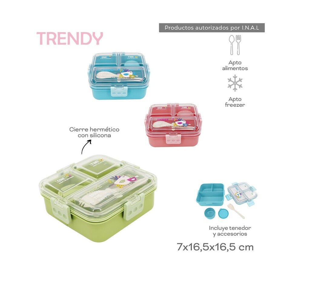 LUNCHERA TRENDY CIERRE HERMETICO CON SILICONA INCLUYE TENEDOR Y ACCESORIOS