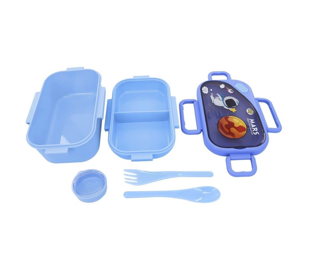 LUNCHERA TRENDY CIERRE HERMETICO C SILICONA DOBLE COMPARTIMIENTO INCLUYE CUBIERTOS Y ACCESORIOS BOTELLA A ROSCA 15X7 CM