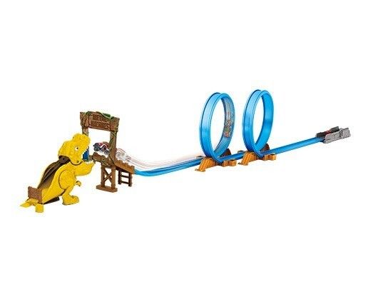 !LANZA TU T-RANGER FURIOSAMENTE PARA DERRIBAR AL T-REX QUE ATERRORIZA A LA REGION! ¿PUEDES CONSTRUIR SUFICIENTE PODER PARA ATRAVESAR DIRECTAMENTE EL T-REX Y DERRIBARLO? !TOMA EL DOBLE CIRCUITO Y VENCE AL DINO! INCLUYE (1) COCHE RANGER- (1) T-REX- (1) HAZARD BARREL- (1) STUNT PORTAL- (1) LANZADOR- (5) 390 MILIMETROS DE ORUGAS- (1) 280 MILIMETROS DE ORUGA- (1) PIEZA DE SEGUIMIENTO DE 600 MILIMETROS- (1) PIEZA DE SEGUIMIENTO DE 78-5 MILIMETROS. – EDAD RECOMENDADA- +4 ANOS MEDIDAS DE LA CAJA CONTENEDORA- 30 CM DE ALTO X 8 CM DE PROF X 40 CM ANCHO