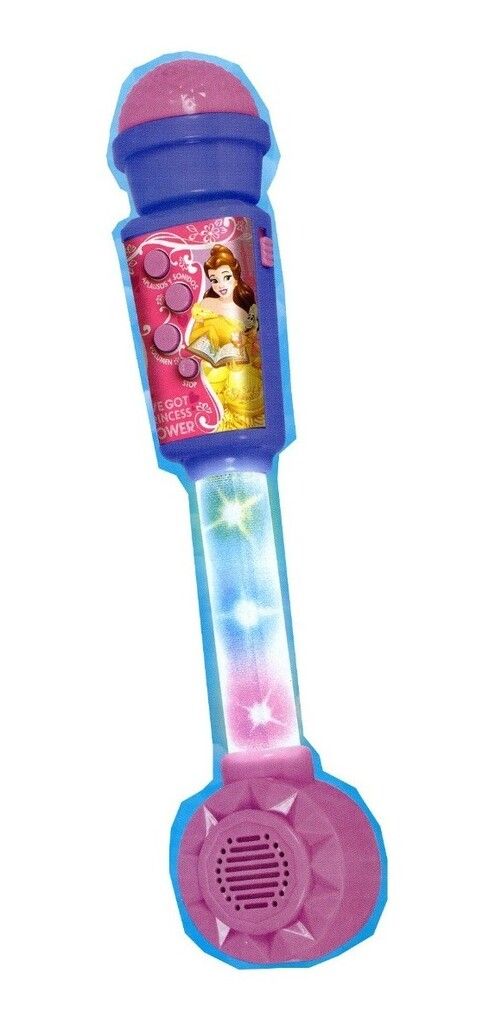 MICROFONO AUTOAMPLIFICADO CON ALTAVOZ- MELODIAS- SONIDOS Y LUCES DE DISNEY PRINCESAS. PARA CANTAR Y SENTIRTE UNA ESTRELLA! CARACTERISTICAS- – LUCES DE COLORES EN LA PARTE INFERIOR – BOTONES DE SONIDOS Y APLAUSOS – CONTROL DE VOLUMEN Y STOP – CON CONEXION MP3 REQUIERE 2 PILAS AA (NO INCLUIDAS)