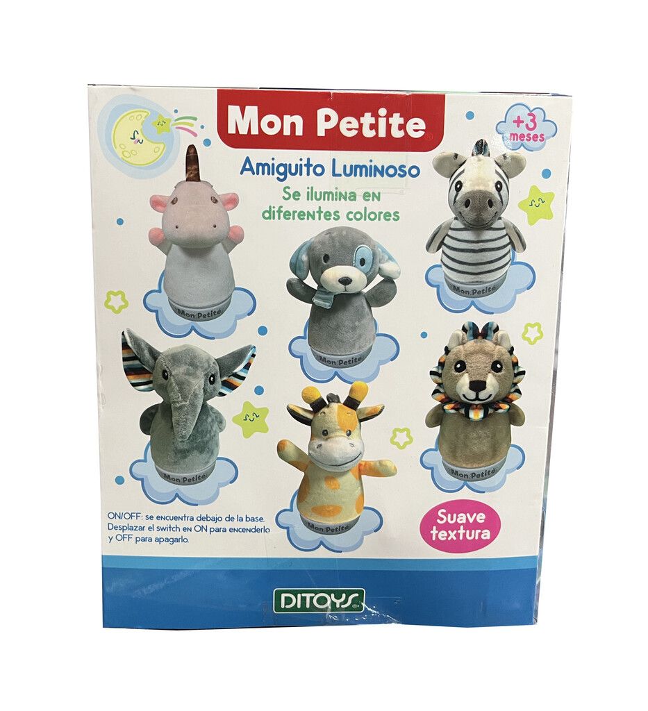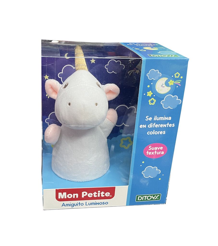 AMIGUITO LUMINOSO. SUAVE TEXTURA SE ILUMINA EN DIFERENTES COLORES. ESTIMULA EL DESARROLLO TACTIL Y SENSORIAL DEL BEBE.