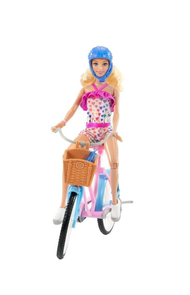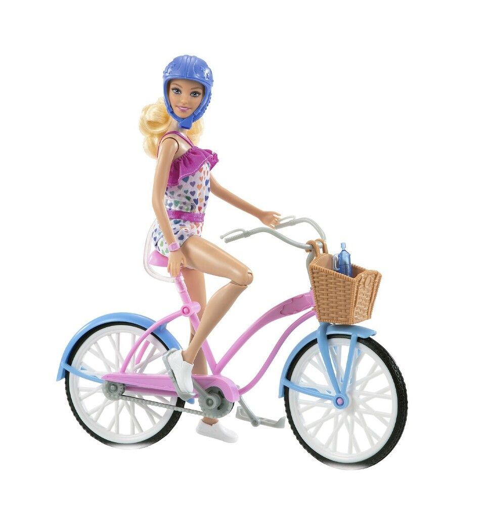 DIVIERTETE CON LA MUNECA BARBIE Y UNA BICICLETA EN LA QUE SE PUEDE MONTAR DE VERDAD. DISENADA CON BONITOS TONOS ROSAS Y AZULES CON DETALLES PLATEADOS Y UNA CESTA LA BICICLETA INSPIRA TODO TIPO DE HISTORIAS. LOS PEDALES Y LAS RUEDAS HACEN QUE MONTAR EN BICICLETA SEA MUY FACIL: COLOCA A LA MUNECA BARBIE EN EL ASIENTO PON SUS MANOS EN EL MANUBRIO Y LUEGO EMPUJA. LA MUNECA BARBIE® SE DOBLA A LA ALTURA DE LAS CADERAS LAS RODILLAS Y LOS BRAZOS PARA JUGAR DE MANERA FACIL Y EN DIFERENTES POSTURAS.