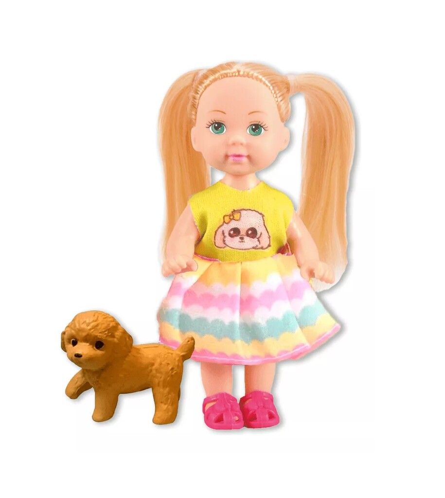 CONTENIDO: MUNECA CON CACHORRITO. .MATERIAL: PLASTICO. .MEDIDAS MUNECA APROXIMADA: 11 CM. .MEDIDAS CAJA APROXIMADAS: 12 X 6 X 4 CM. EDAD RECOMENDADA: +3 ANOS.