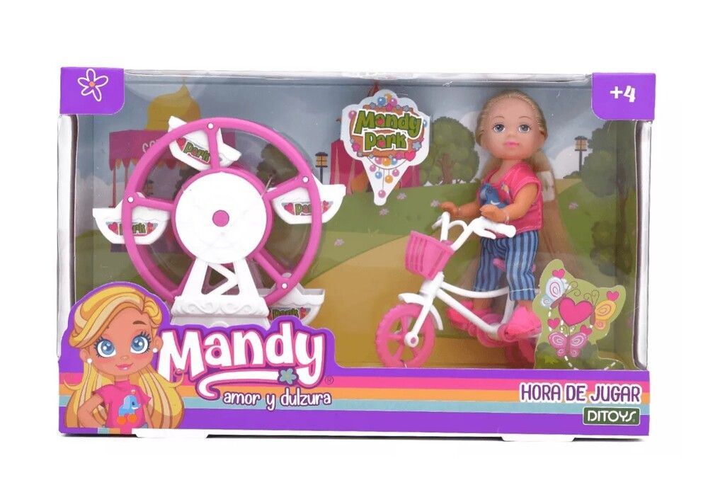 MUÑECA MANDY 11 CM EN BICICLETA CON CASCO COD 2685
