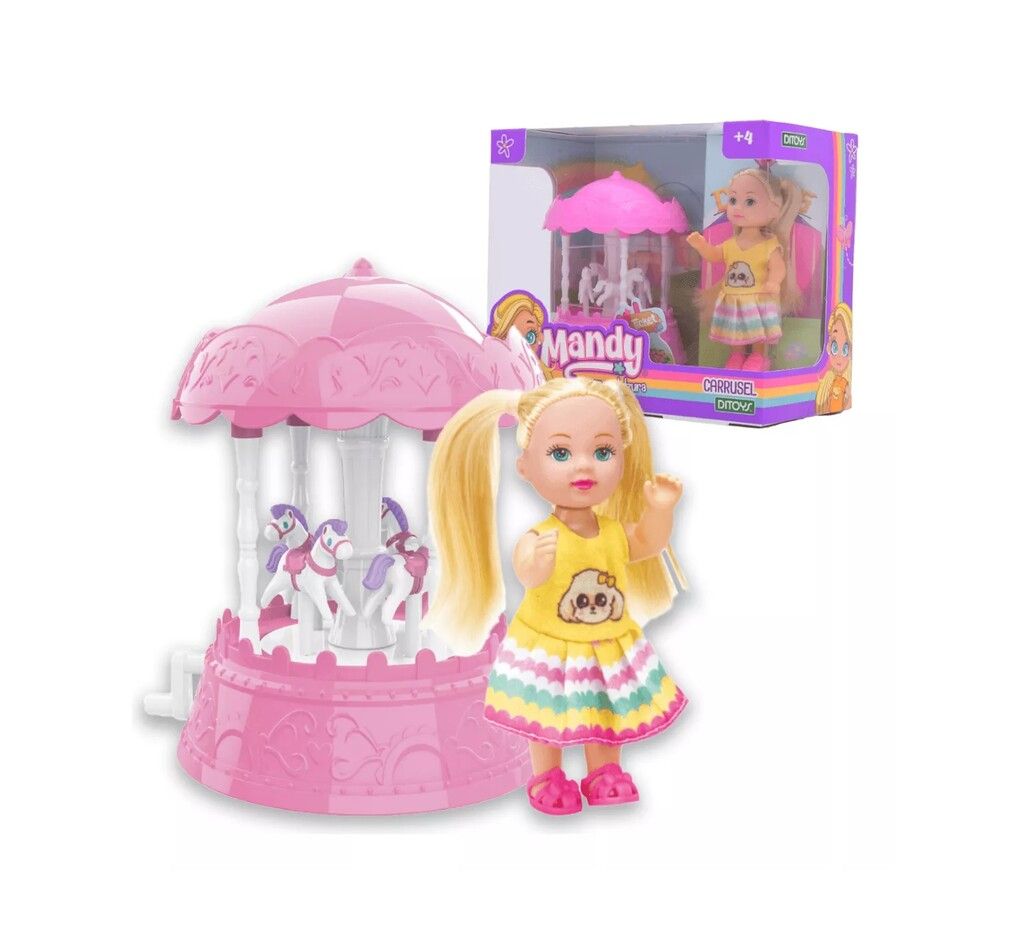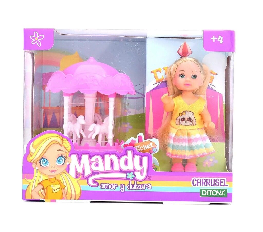 DESCUBRI LA ENCANTADORA MUNECA MANDY CARRUSEL EN ESTE FABULOSO SET. INVITAMOS A LOS NINOS A EXPLORAR NUEVAS HISTORIAS Y A DESARROLLAR SU IMAGINACION MIENTRAS COCINAN Y CREAN SUS PROPIAS RECETAS JUNTO A MANDY . CON MUNECA MANDY CARRUSEL CADA DIA SE CONVIERTE EN UNA NUEVA AVENTURA. CARACTERISTICAS: .CONTENIDO: MUNECA 12 ACCESORIOS DE COCINA. . AL MOVER LA PALANCA EL CARRUSEL GIRA. .MATERIAL: PLASTICO. .MEDIDAS MUNECA APROXIMADA: 8 CM. .MEDIDAS CAJA APROXIMADAS: 23 X 17 CM. EDAD RECOMENDADA: +3 ANOS.