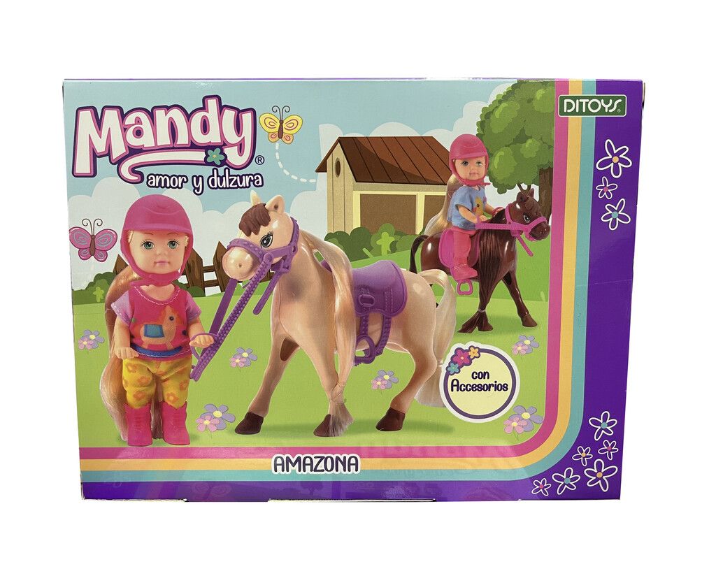 MUÑECA MANDY CON SU CABALLO AMAZONA COD 2680 MARRON