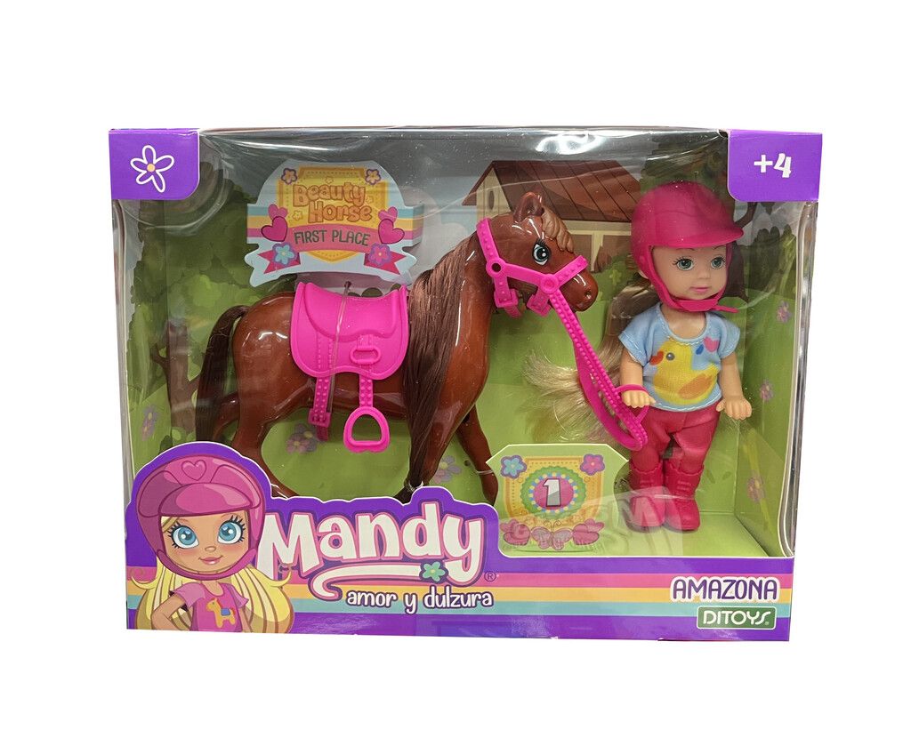 MUÑECA MANDY CON SU CABALLO AMAZONA COD 2680 BEIGE