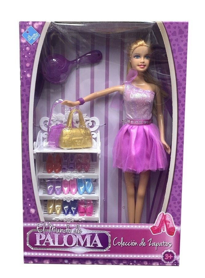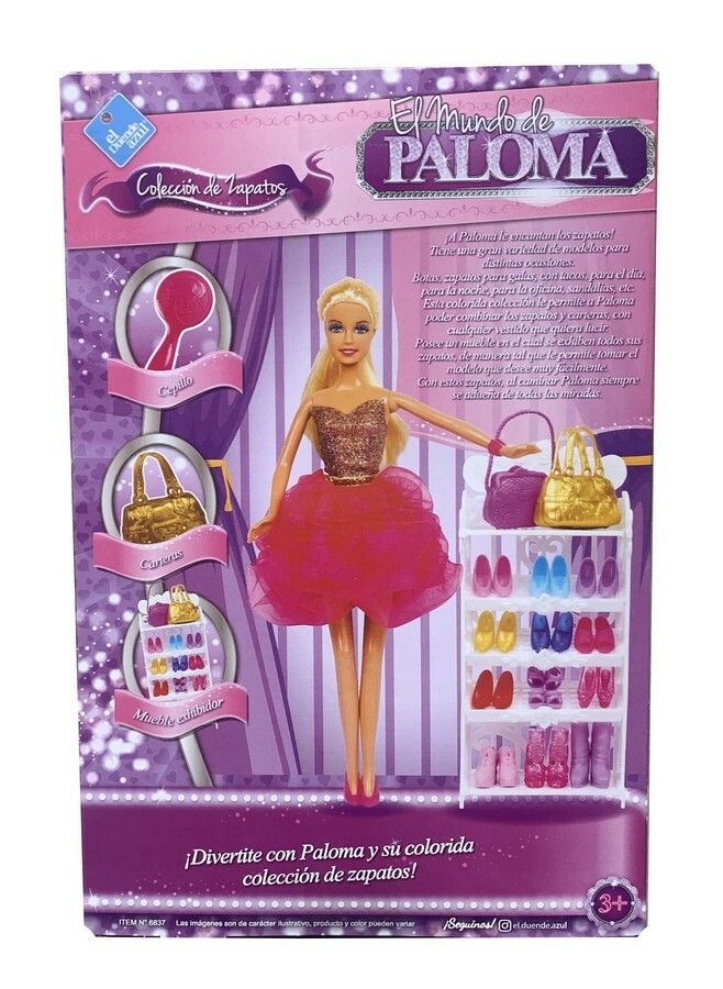 !A PALOMA LE ENCANTAN LOS ZAPATOS! TIENE UNA GRAN VARIEDAD DE MODELOS PARA DISTINTAS OCASIONES. !DIVERTITE CON PALOMA Y SU COLORIDA COLECCION DE ZAPATOS! CONTIENE- CEPILLO- CARTERAS- MUEBLE EXHIBIDOR Y 9 PARES DE ZAPATOS.