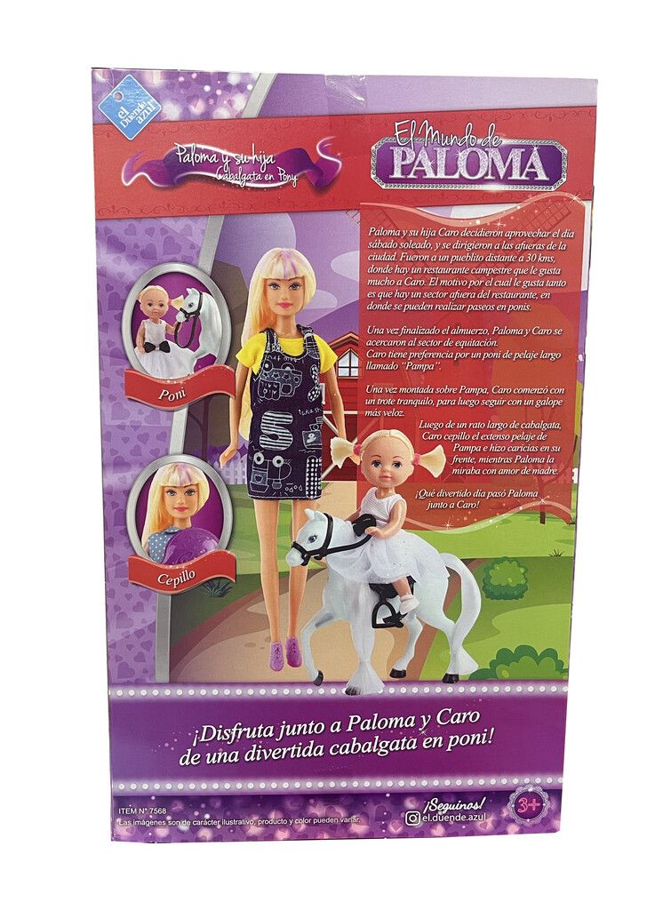 »MUNECA PALOMA Y SU HIJA CABALGATA EN PONY» PALOMA Y SU HIJA CARO DECIDIERON APROVECHAR EL DIA SABADO SOLEADO Y SE DIRIGIERON A LAS AFUERAS DE LA CIUDAD. FUERON A UN PUEBLITO DISTANTE A 30 KM DONDE HAY UN RESTAURANTE CAMPESTRE QUE LE GUSTA MUCHO A CARO. EL MOTIVO POR EL CUAL LE GUSTA TANTO ES QUE HAY UN SECTOR AFUERA DEL RESTAURANTE EN DONDE SE PUEDEN REALIZAR PASEOS EN PONIS.