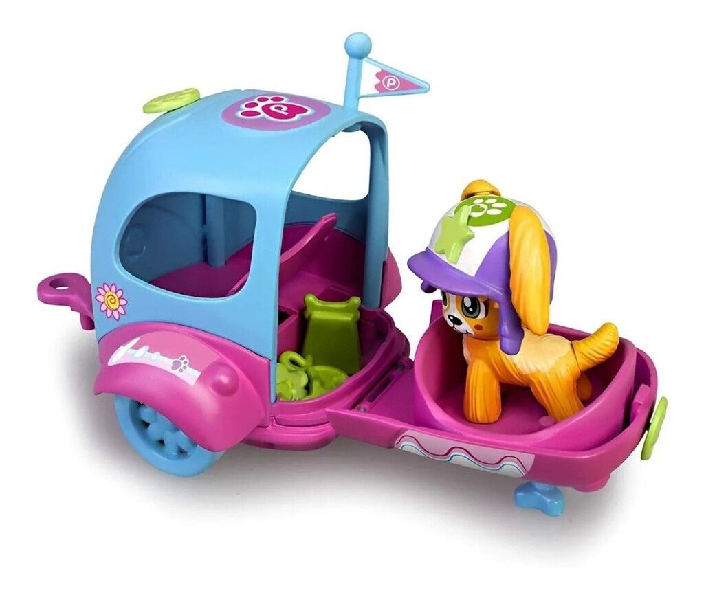 PINYPON CON CARRITO PARA LLEVAR A LA MASCOTA. LOS PELOS DE LAS FIGURAS Y LOS CACHORROS SON INTERCAMBIABLES AL IGUAL QUE LOS ZAPATOS. DENTRO DEL REMOLQUE HAY UN COMPARTIMENTO PARA GUARDAR ACCESORIOS MEDIDA DE LAS FIGURAS- 7.8 CM.