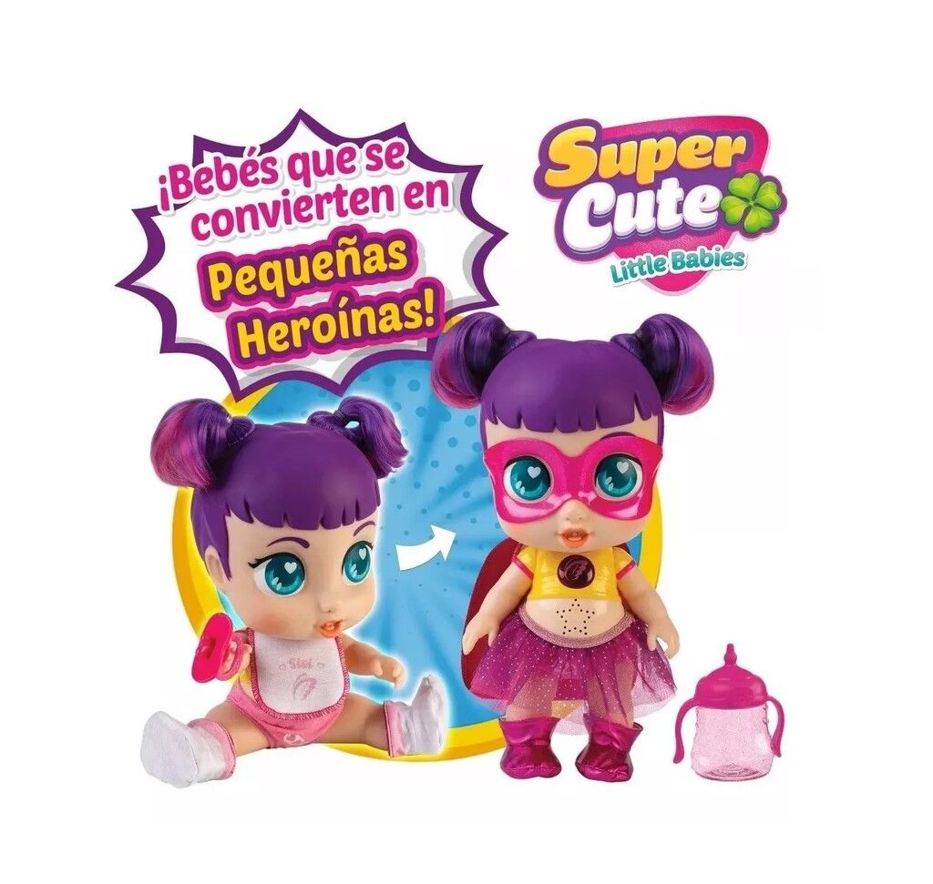 SUPER CUTE LITTLE BABIES CON BIBERON LUMINOSO SONIDOS OUTFIT REVERSIBLE SISI- GABI- SOFI Y KALA SON CUATRO BEBES ADORABLES CON SUPERPODERES UNICOS QUE HAN SIDO ELEGIDOS PARA PROTEGER NUESTRO MEDIO AMBIENTE Y ENSENAR A OTROS NINOS A AMAR Y RESPETAR LA NATURALEZA. JUNTOS NOS LLEVARAN A UNA AVENTURA PARA DESCUBRIR UN MUNDO LLENO DE FANTASIA- EMOCION Y MARAVILLAS NATURALES. A TRAVES DE SUS PODERES ESPECIALES- ENSENARAN A NINOS Y NINAS LA IMPORTANCIA DE CUIDAR NUESTRO PLANETA TIERRA. INCLUYE- BIBERON LUMINOSO Y ACCESORIOS EL MEDALLON DE PODER SE ILUMINA!