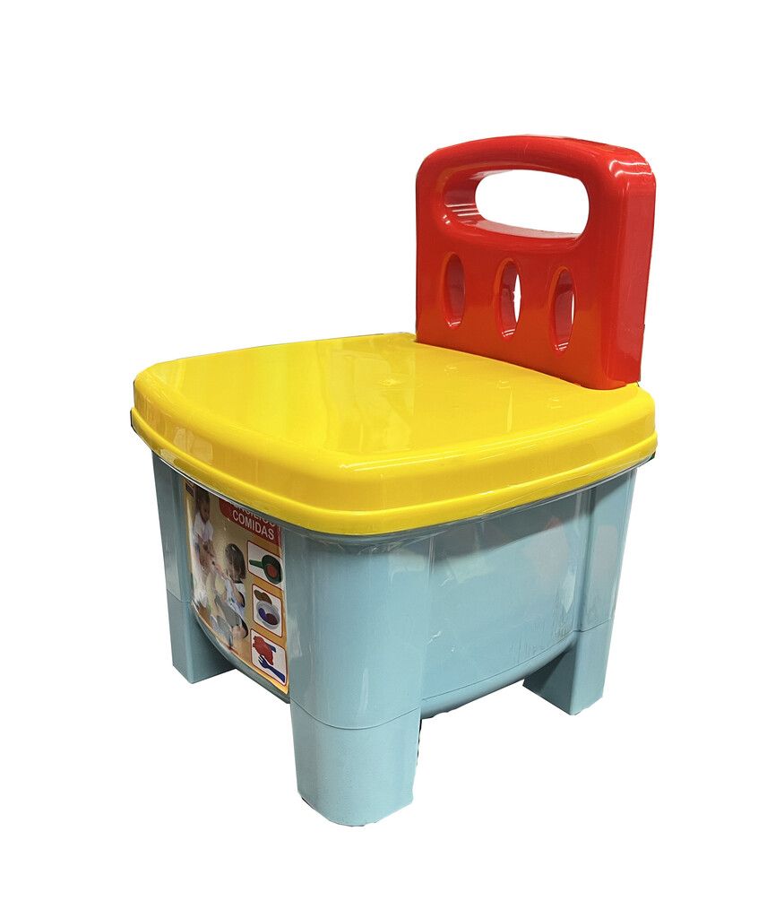 SILLA BANCO INFANTIL 2 EN 1 BANQUITO + UTENSILIOS Y COMIDA MARCA: NEW PLAST EL BANQUITO TIENE UNA TAPA QUE SE ABRE PARA QUE SE PUEDAN SACAR LOS UTENSILIOS Y LA COMIDA LOS CHICOS PUEDAN JUGAR LUEGO SE GUARDAN NUEVAMENTE Y SE CIERRA. EL NINO PUEDE SENTARSE SOBRE EL BANQUITO ES MUY RESISTENTE ALTURA DE LA SILLA DEL PISO AL ASIENTO: 20 CM ALTURA DE LA SILLA DEL PISO AL RESPALDO: 34 CM MEDIDA DE LA BASE: 26X26CM