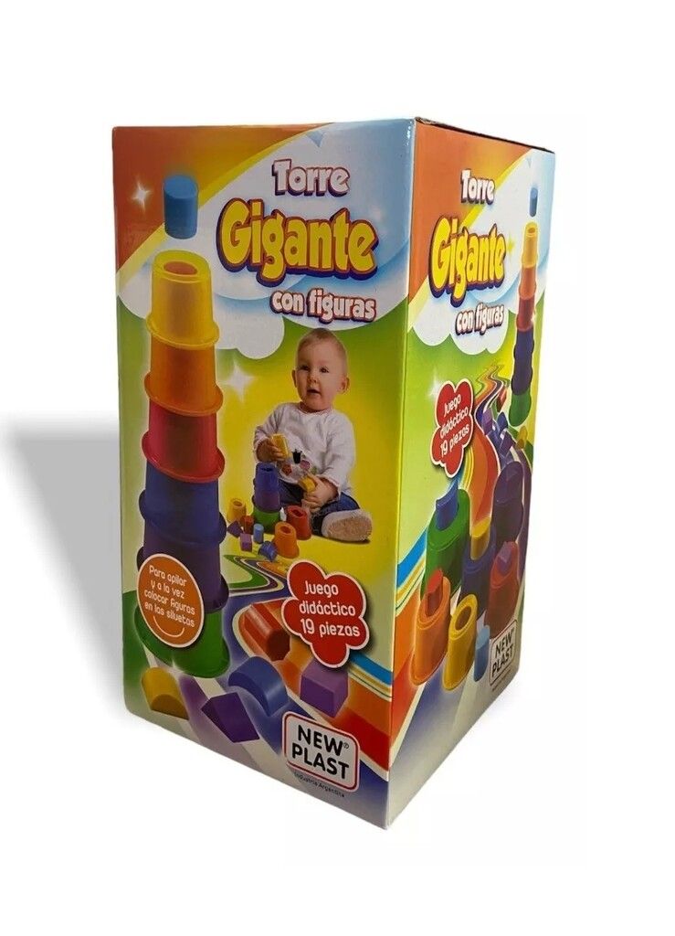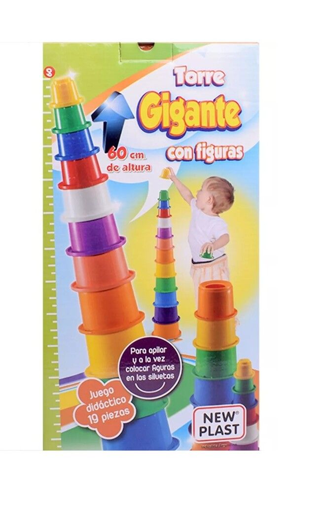 TORRE EDUCATIVA APILABLE ENCASTRABLE JUGUETE BEBES NEW PLAST – 19 PZAS – IDEAL PARA BEBES. – DIDACTICO. – ALURA 60 CM – FABRICADO EN PLASTICO REFORZADO.