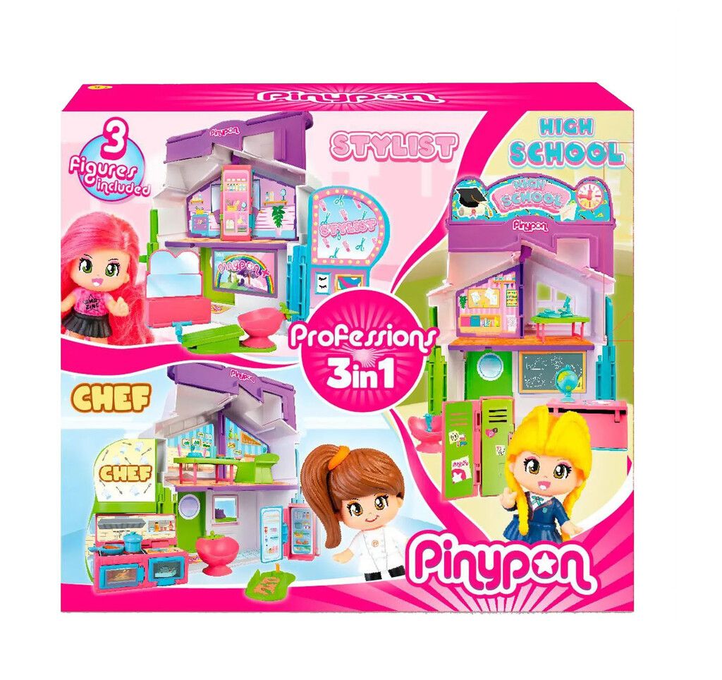 PINYPON PROFESIONES 3 EN 1 ES UN JUGUETE CONVERTIBLE DE 3 ESCENARIOS EN 1. SE PUEDE JUGAR CON TUS PINYPON EN UNA ESCUELA EN UN SALON DE BELLEZA O EN LA COCINA DE UN RESTAURANTE !TU DECIDES! ESTOS TRES ESCENARIOS PUEDEN CONVERTIRSE DE UNO A OTRO GRACIAS A LOS MUEBLES CONVERTIBLES LOS PANELES DE DECORACION Y LOS DIFERENTES ACCESORIOS DE CADA PROFESION. INCLUYE 3 FIGURAS DE PINYPON DIFERENTES: CHEF PROFESORA Y ESTILISTA. ADEMAS CONTIENE MUCHOS ACCESORIOS RELACIONADOS CON CADA PROFESION: PEINE SECADOR CHAMPU SARTENES INGREDIENTES MICROSCOPIO LIBROS ETC. MEDIDAS PACKAGING: 35CM ALTO X 40CM LARGO X 10CM ANCHO
