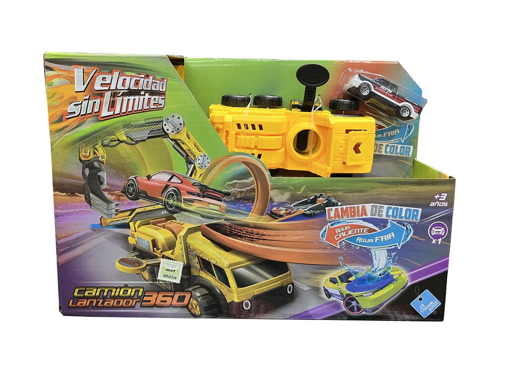 PISTA CAMION LANZADOR 360 CON VEHICULO CAMBIA DE COLOR EL DUENDE AZUL 7726 !MAXIMA DIVERSION CON VELOCIDAD SIN LIMITES! ARMA LA INCREIBLE PISTA CON UN GIRO DE 360 Y COLOCA TODOS LOS ACCESORIOS PARA LANZAR CON MAS POTENCIA COLOCA 1 BANDA ELASTICA (INCLUIDA) DE MANERA DOBLE PRESIONA PARA LANZAR Y MIRA COMO TU VEHICULO SALE DISPARADO A MAXIMA POTENCIA POR LA PISTA! !TAMBIEN PUEDES SUMERGIR EL VEHICULO EN AGUA FRIA O AGUA CALIENTE (BAJO SUPERVISION DE UN ADULTO) Y CAMBIARA DE COLOR!… ASI TENDRAS DOS INCREIBLES DISENOS EN UNO SOLO. !NO TE PIERDAS DE LA MAXIMA DIVERSION CON VELOCIDAD SIN LIMITE! LAS DIMENSIONES TOTALES DE LA PISTA ES DE 130CM (LARGO) X 23CM (ALTO) X 13CM (ANCHO)