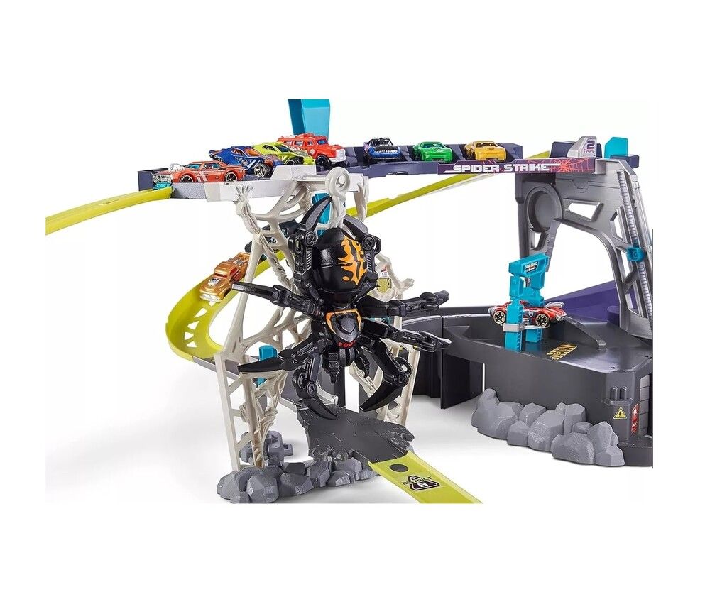 ENFRENTA LA ARANA GIGANTE EN SU INTRINCADA TELARANA Y DEMUESTRA TU VALENTIA AL DERROTAR A LA BESTIA. NUESTRO JUEGO PRESENTA UN GARAJE DE VARIOS NIVELES CON UN INNOVADOR ELEVADOR DE AUTOMOVILES INTEGRADO Y MANUAL. CON DOS NIVELES QUE OFRECEN ESPACIO PARA MAS DE 8 AUTOS ASI COMO UN TALLER Y UN GARAJE EXCLUSIVO PARA ESTACIONAR TUS VEHICULOS !NUNCA TE QUEDARAS SIN ESPACIO PARA TU COLECCION! MEDIDAS DE LA PISTA: 1.71CM DE LARGO Y DE ALTO 38CM