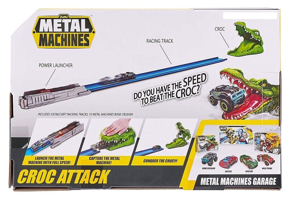 UN POTENTE LANZADOR QUE ENVIA TUS MAQUINAS DE METAL VOLANDO POR LA PISTA CARRERA DE CARRERAS DE 61 CM COCHE FUNDIDO A PRESION NUMERO DE MODELO- 6718 DA RIENDA SUELTA A TU TRITURADOR DE HUESOS FURIOSAMENTE CON EL POTENTE LANZADOR DE MAQUINA DE METAL- Y CONQUISTA EL PELIGROSO COCODRILO ESPERANDO. SI NO TIENES EXITO- TU MAQUINA DE METAL SERA CAPTURADA Y NO TENDRA ESCAPES. ¿PUEDES CONSTRUIR SUFICIENTE POTENCIA PARA VENCER AL CROC?