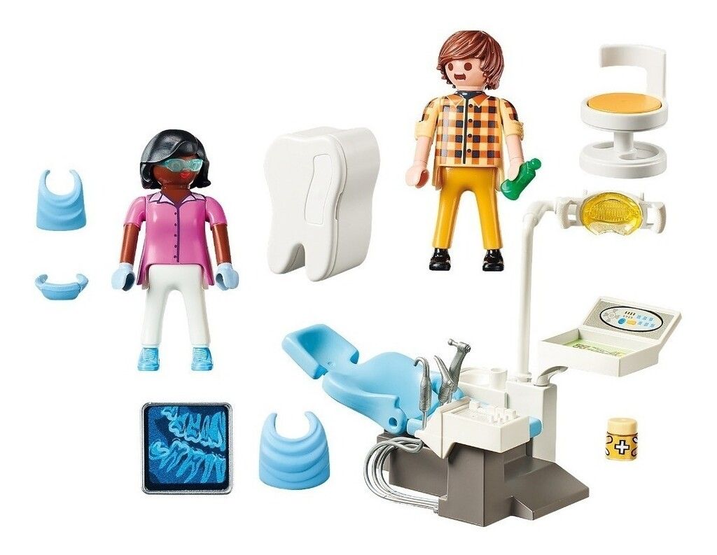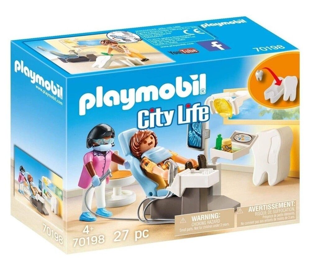 PLAYMOBIL CITY LIFE 70198 DENTISTA CON PACIENTE ? 27 PIEZAS EL RESPALDO Y EL ASIENTO DE LA SILLA DE TRATAMIENTO SON AJUSTABLES LA SUPERFICIE DE ORDEN Y GUARDADO DEL DENTISTA SE PUEDE GIRAR. LA LAMPARA PUEDE MOVERSE EN TODAS LAS DIRECCIONES EL PACIENTE TIENE DOS EXPRESIONES FACIALES QUE PUEDEN VERSE AL GIRAR SU CABELLO INCLUYE UNA CAJA DE GUARDADO PARA DIENTES DE LECHE- INCLUYE UNA ETIQUETA PARA PONER EL NOMBRE DEL DUENO.