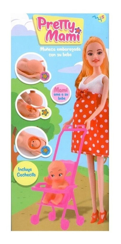 HERMOSA MUNECA EMBARAZADA !!! VIENE CON SU BEBE !!! INCLUYE UN CARRITO PARA PASEAR A SU BEBE !!! LA MAMA ESTA VESTIDA CON UN ESPECTACULAR VESTIDO !!! HORAS DE DIVERSION ASEGURADA !!! LA MUNECA TIENE UNA ALTURA DE 28 CM CONTENIDO- – 1 MUNECA – 1 BEBE – 1 COCHECITO