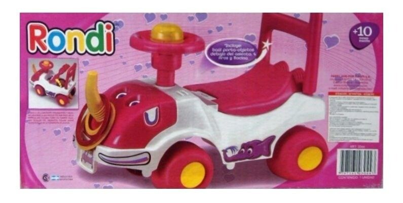 PATA PATA RONDI- ELEFANTE ROSA CARACTERISTICAS ? PATA PATA CON BAUL- BOCINA Y AROS. ? MATERIALES DEL PATA PATA Y ACCESORIOS- PLASTICO. ? MEDIDAS- 53 X 39 X 23 CM APROXIMADAMENTE. INCLUYE ? 1 PATA PATA ELEFANTE ROSA. ? 4 AROS PARA LA TROMPITA. ? VOLANTE CON BOCINA.