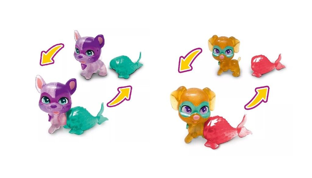SUPERCUTE LITTLE BABIES MASCOTAS MERMAID PUPS SC045 LOS MINI CACHORROS DE SIRENA SUPER LINDOS SON 4 CACHORROS EXCLUSIVOS CON COLAS DE SIRENA INTERCAMBIABLES UNO DE LOS CUALES ES UNA SORPRESA. SON TRANSPARENTES Y BRILLANTES Y MIDEN 5 CM. AL PONER LA BOLSA SORPRESA EN EL AGUA SE DISUELVE PUEDES DESCUBRIR EL ANIMAL EXCLUSIVO QUE TE TOCO EN EL PAQUETE. LOS 4 PERROS SON: ALLIE WANDA SUNNY Y LYLY. ESTOS PACKS INCLUYEN 4 COLAS DE SIRENA 3 MINI CACHORROS DE SIRENA + EL CACHORRO SORPRESA