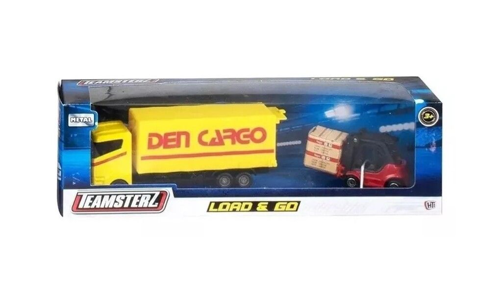 CAMION CON MONTACARGAS CLARK TEAMSTERZ CARACTERISTICAS: – CAMION TRANSPORTADOR – MONTACARGAS CLARK – AMBOS CON MOVIMIENTO – LA CARGA SE PUEDE COLOCAR DENTRO DEL CAMION – CARROCERIA METALICA – MEDIDAS DEL CAMION: 14CM X 5.5CM X 4CM – MEDIDAS DEL CLARK: 7.5CM X 4.5CM X 3CM